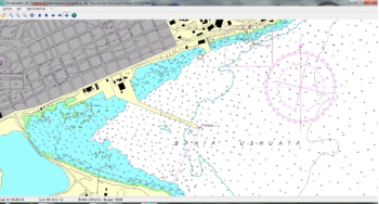 Vista parcial de la Carta Náutica H-480 con el Visualizador del Sistema de Información Geográfica del Servicio de Hidrografía Naval Argentino (VSIGSHN)
