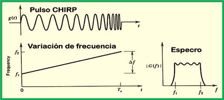 - Sistemas CHIRP, operan alrededor de una frecuencia central que es barrida electrónicamente a lo largo de un rango de frecuencias entre 3 y 20 kHz. Cubren las misma aplicaciones que los pingers pero además se extienden a frecuencias mas bajas suministrando por lo tanto mejor penetración.